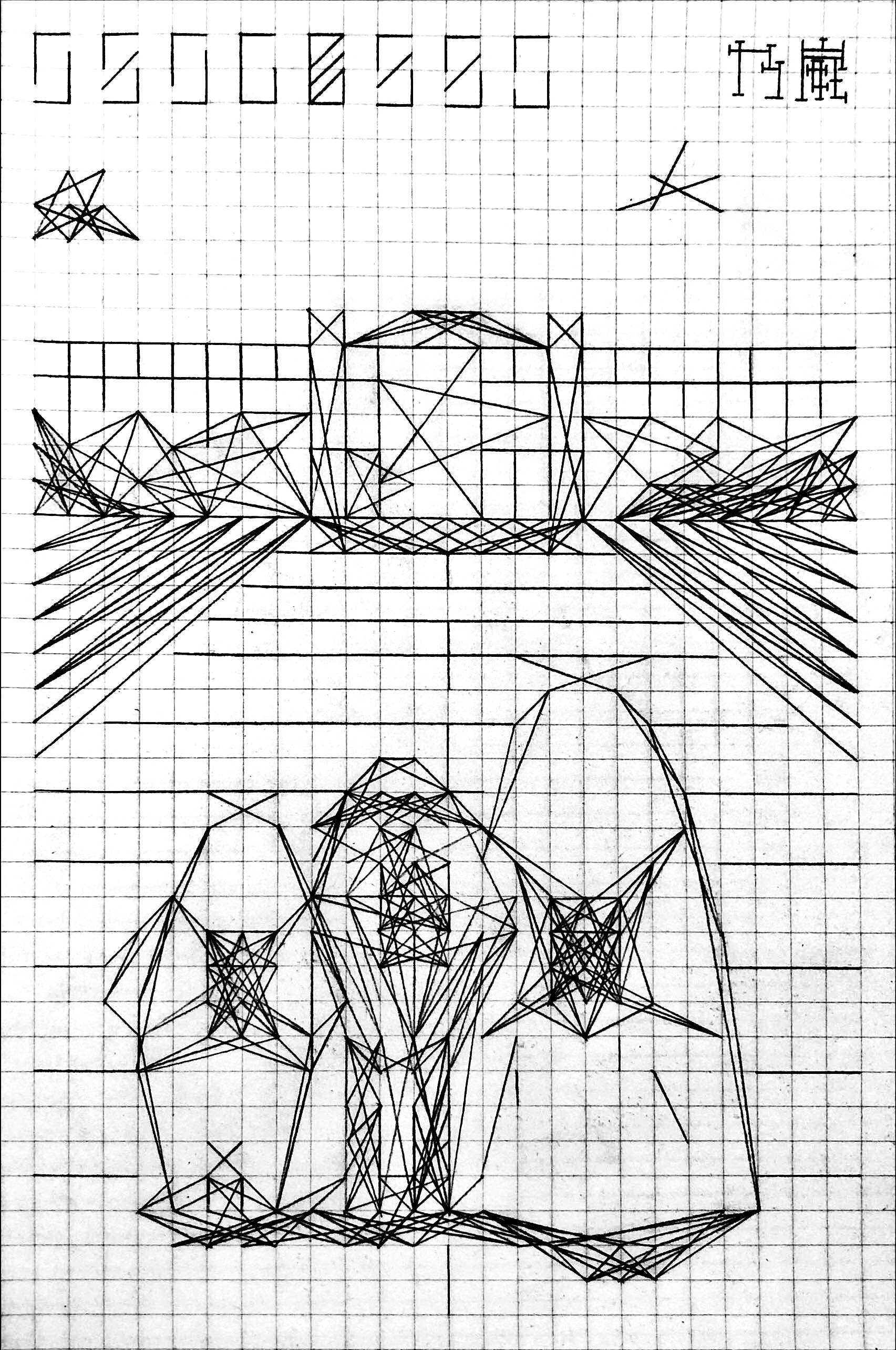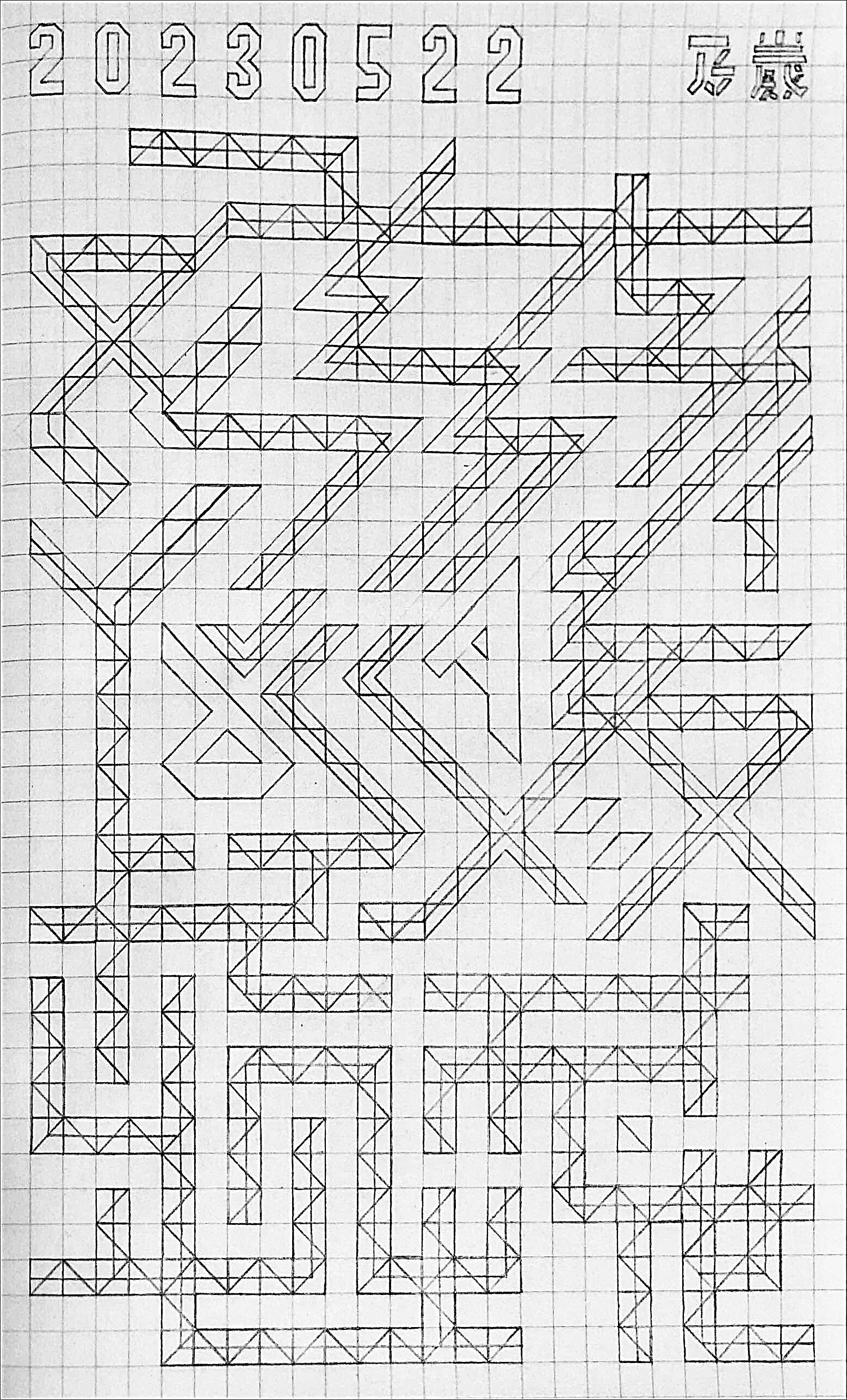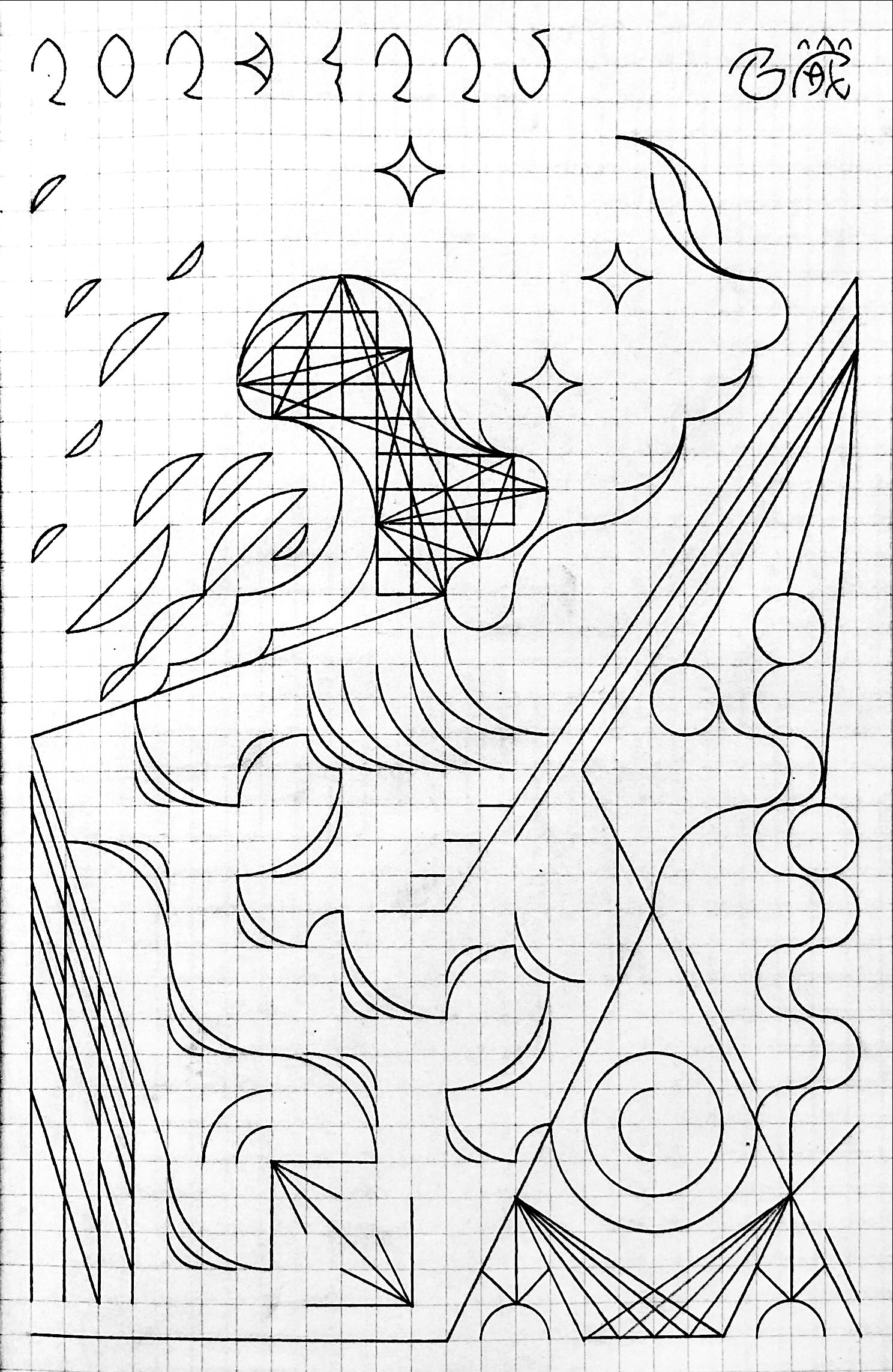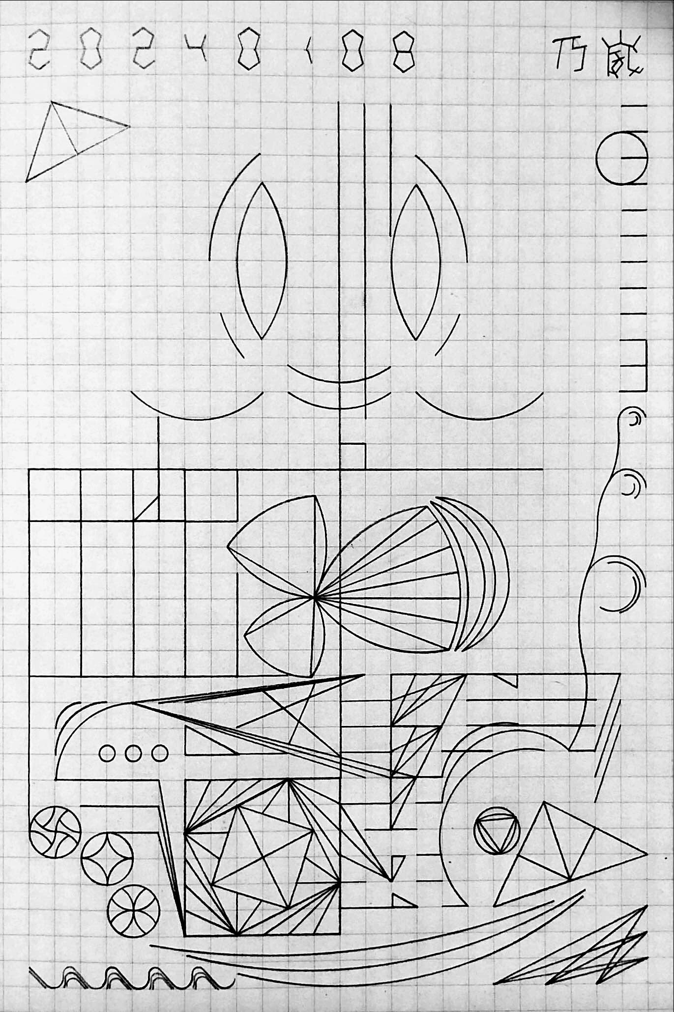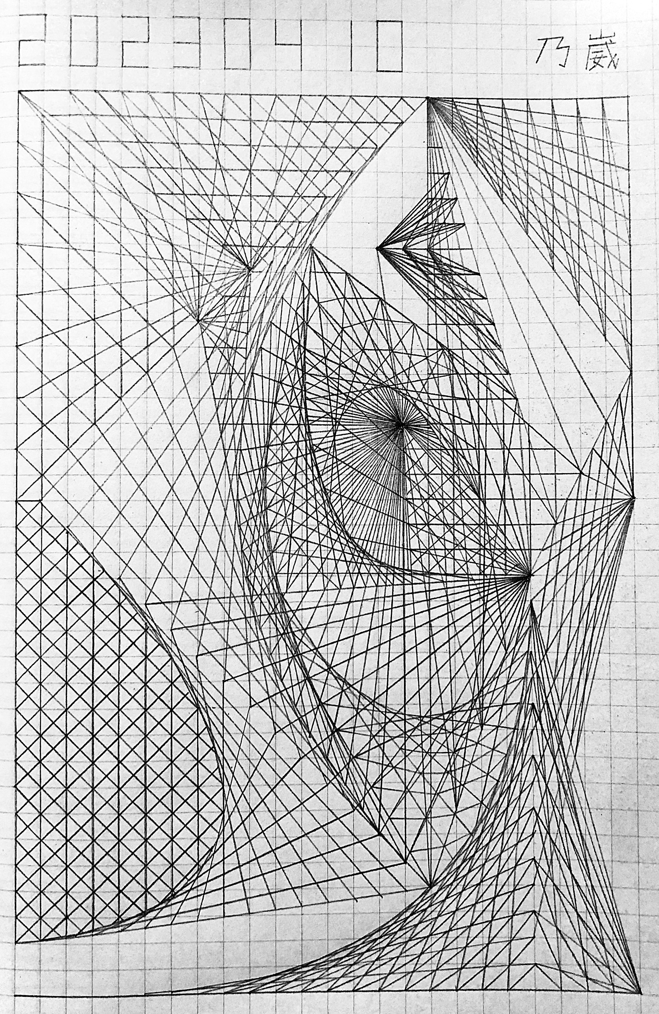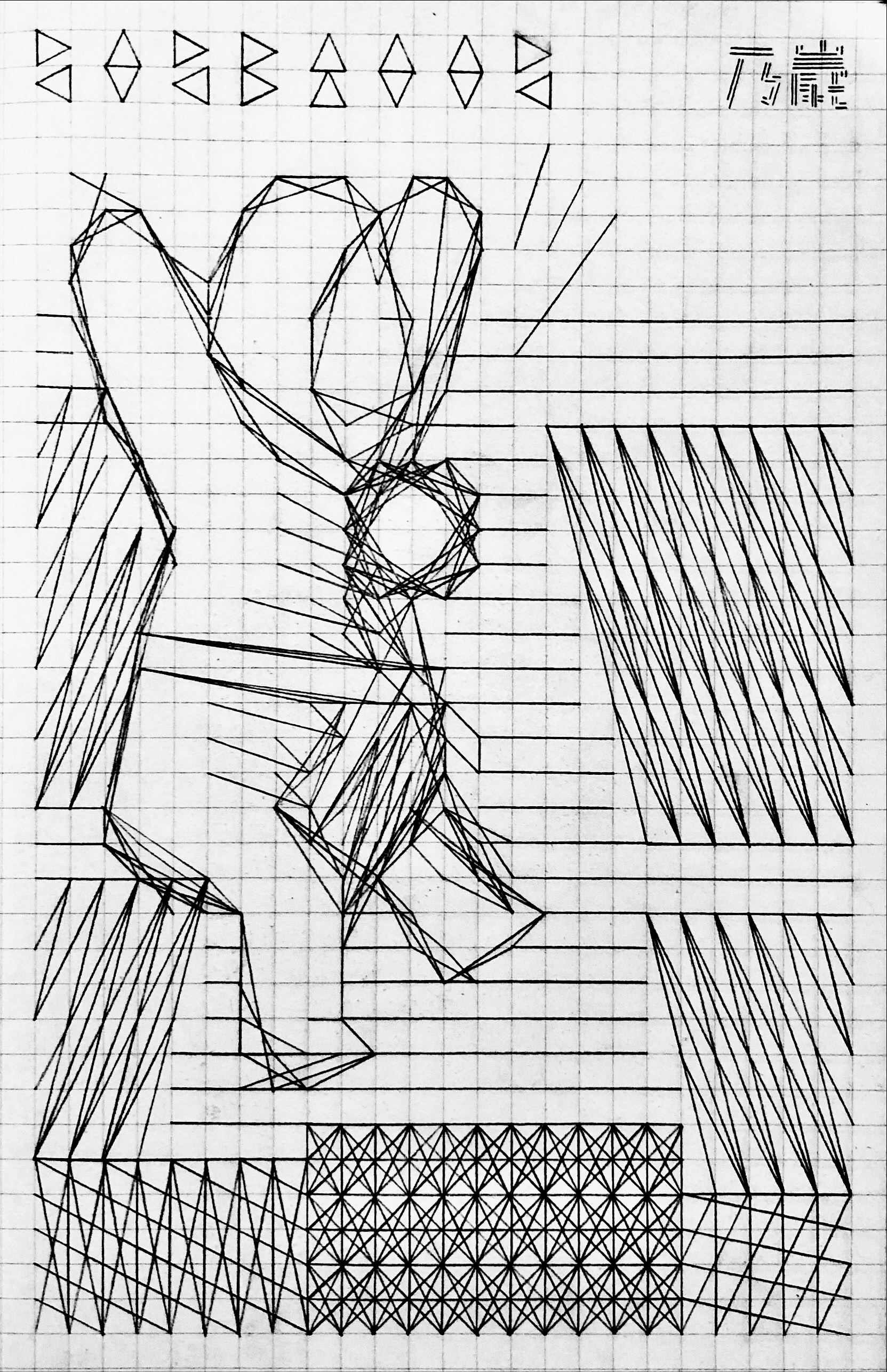 以純線條為限制條件,一週完成一幅素描,最終累積一百週的持續創作。作品以 2B 鉛筆於 A5 方格紙上繪製,探索直線取線在構圖、明暗與空間上的可能性。