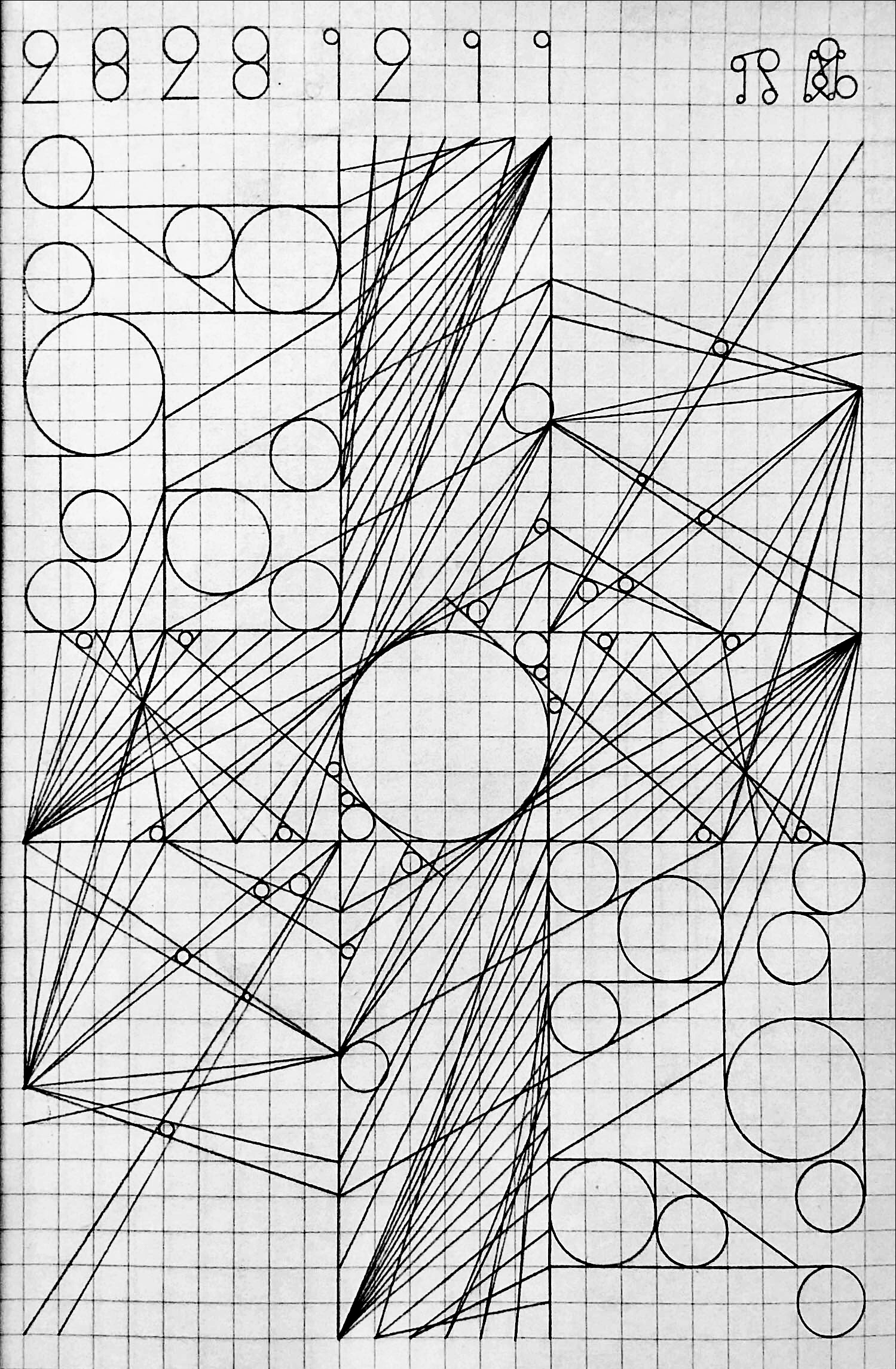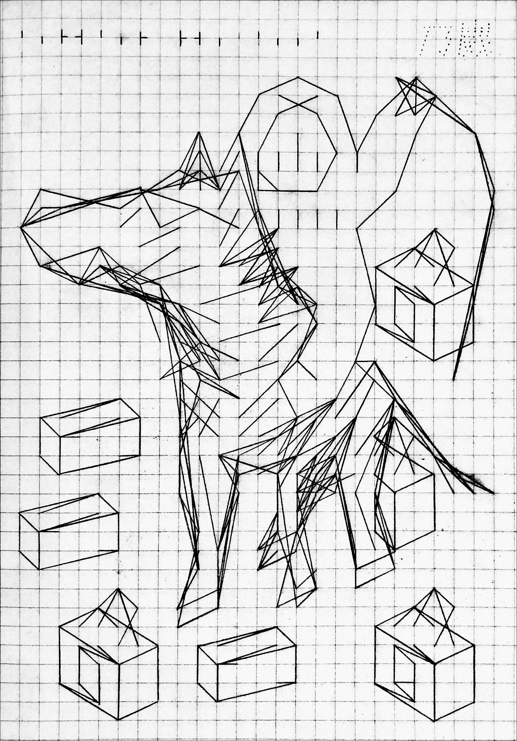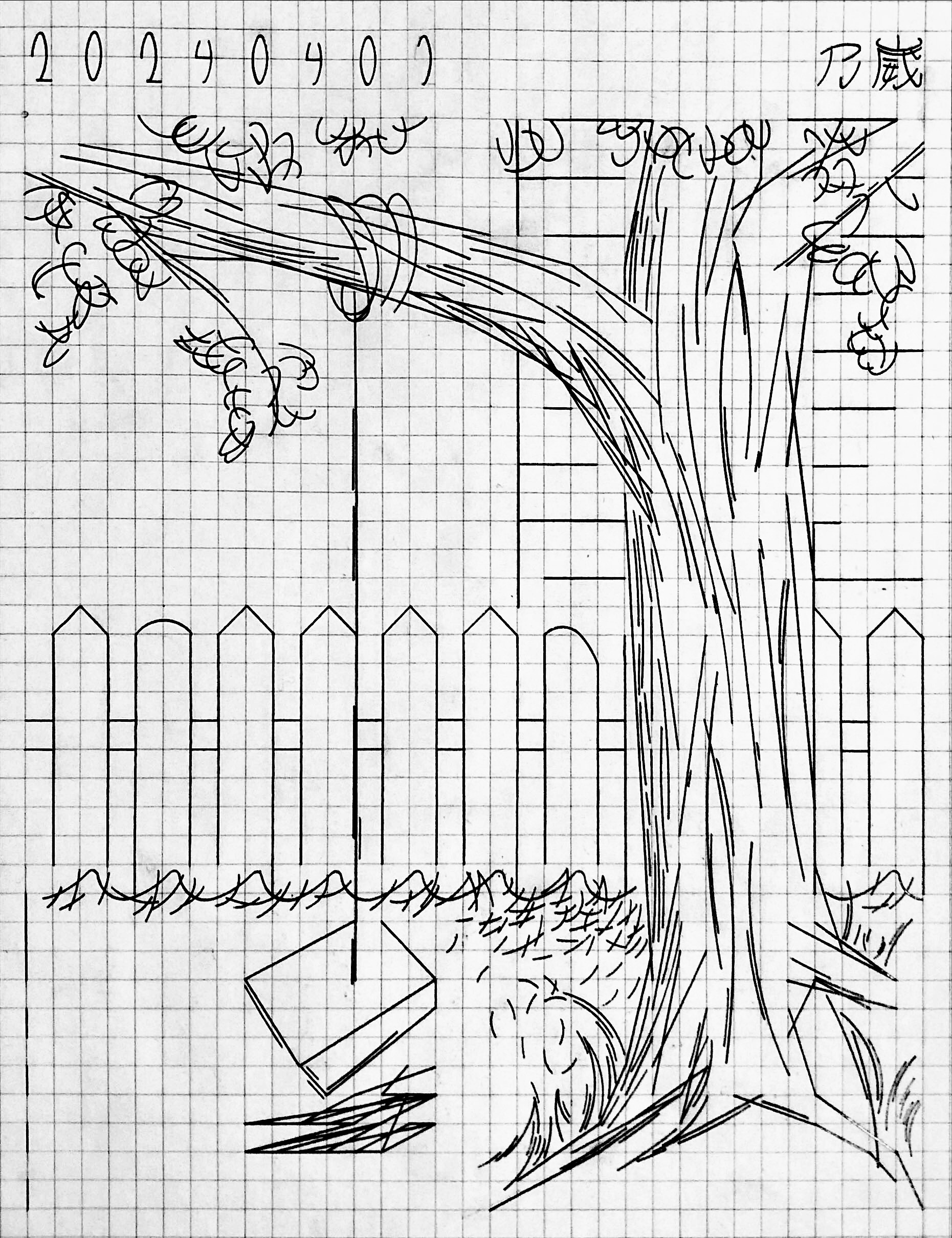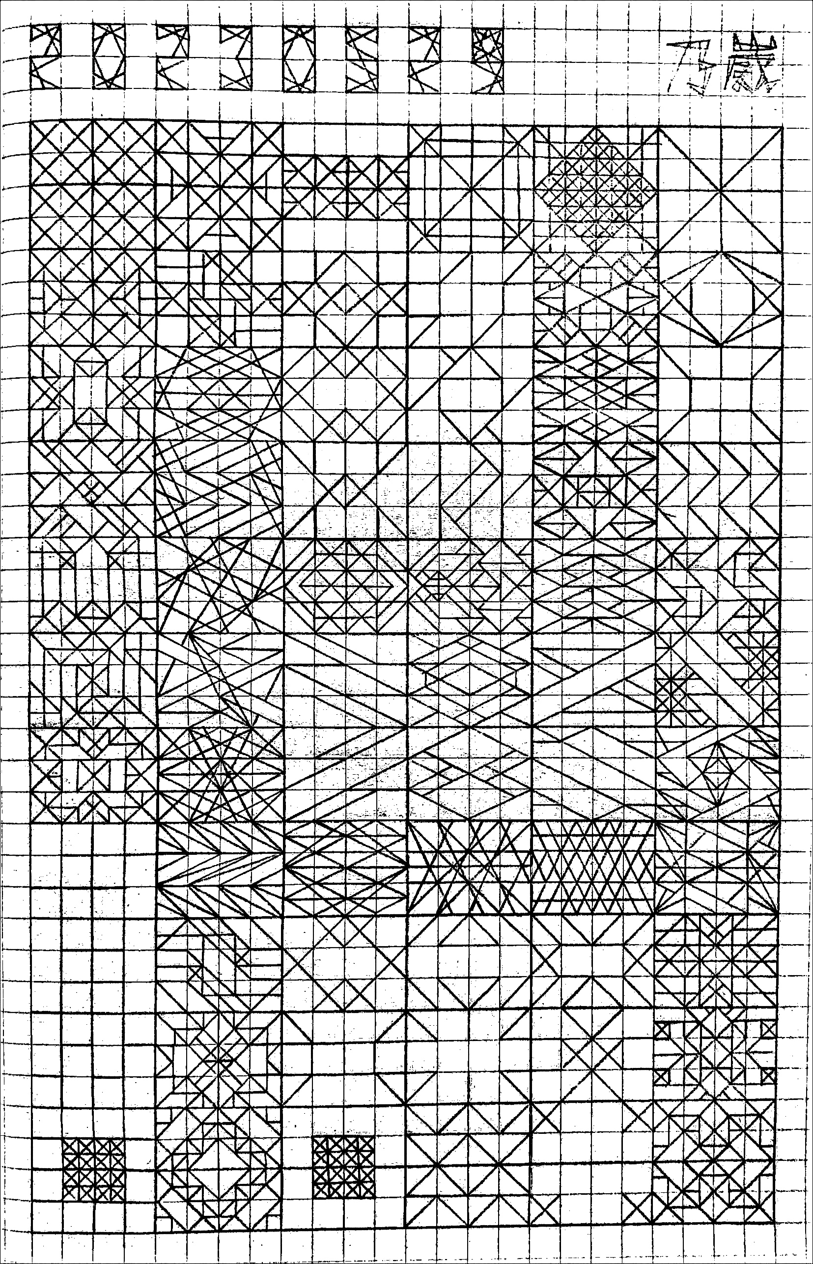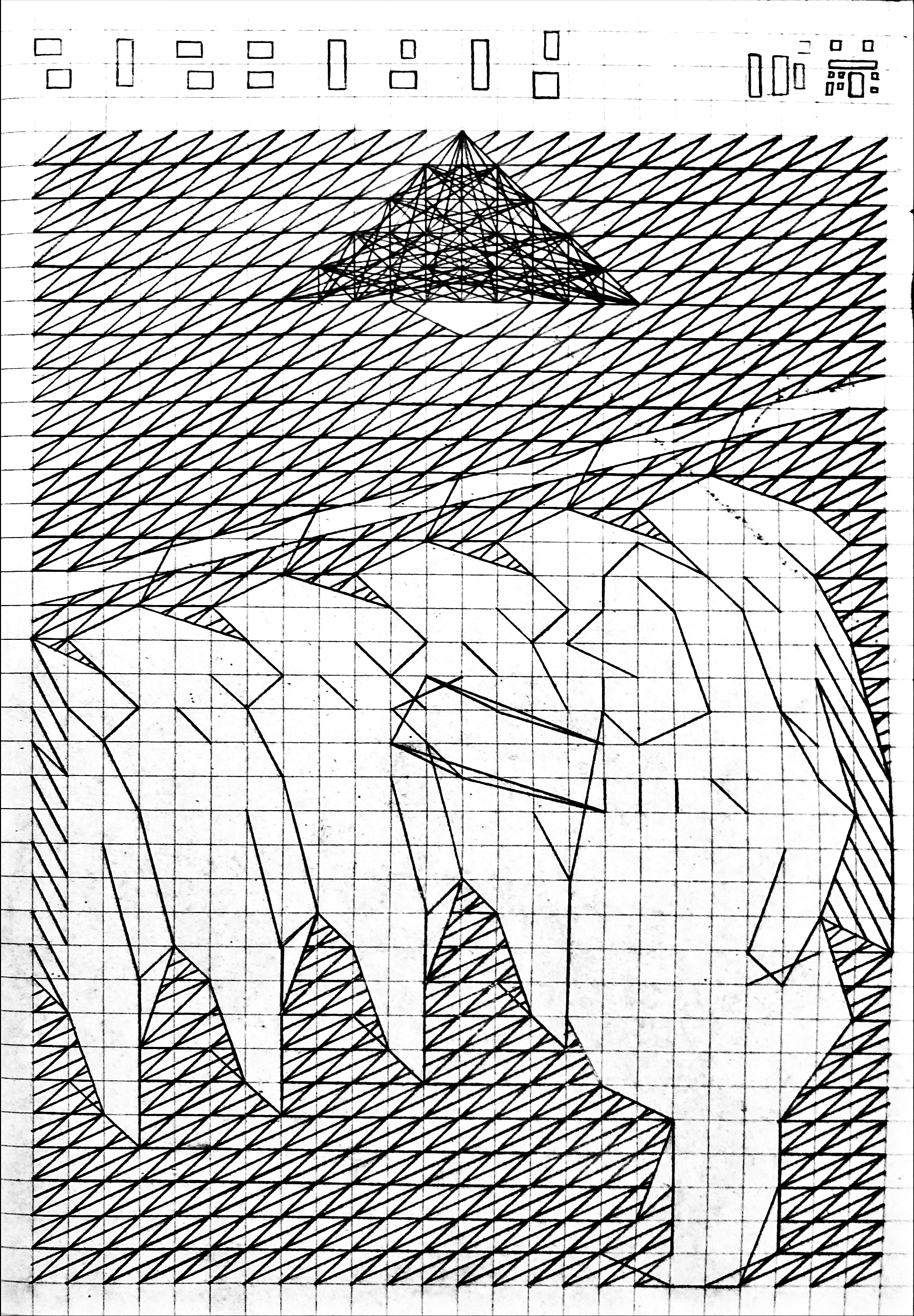以純線條為限制條件,一週完成一幅素描,最終累積一百週的持續創作。作品以 2B 鉛筆於 A5 方格紙上繪製,探索直線取線在構圖、明暗與空間上的可能性。
