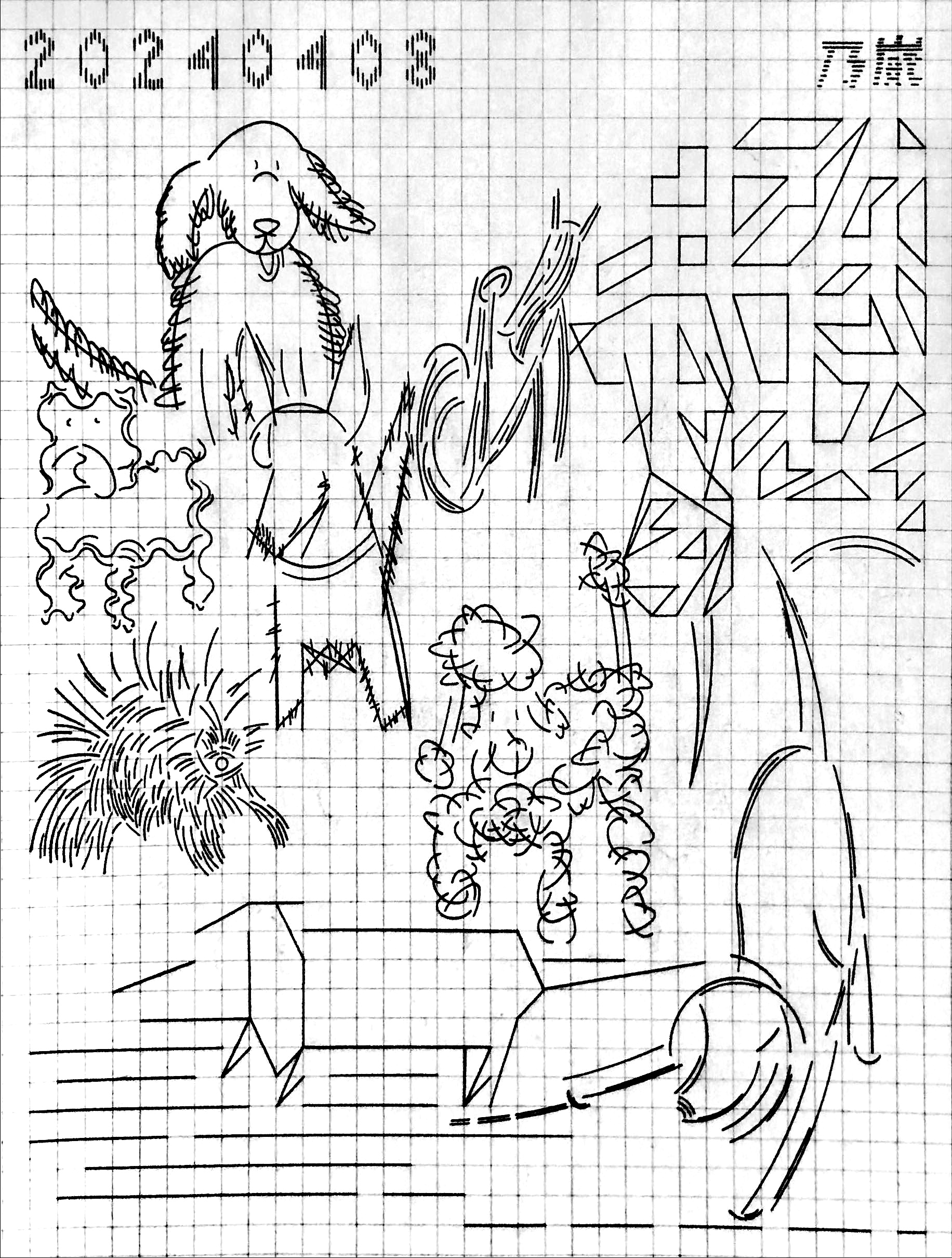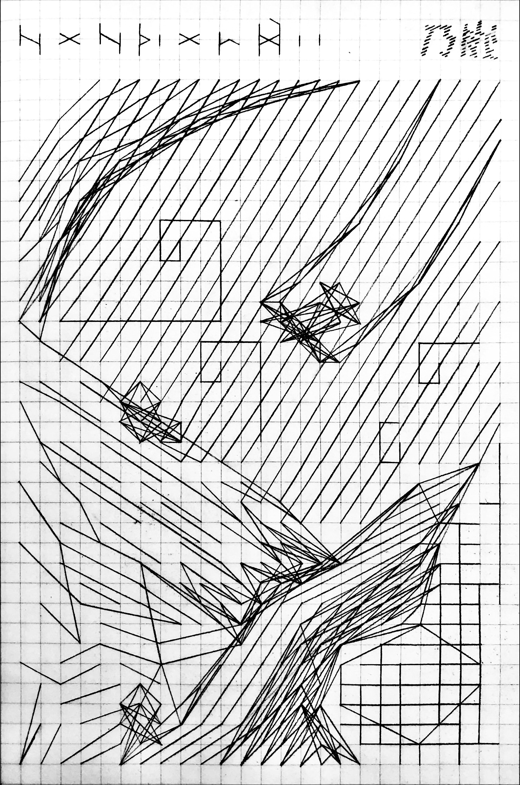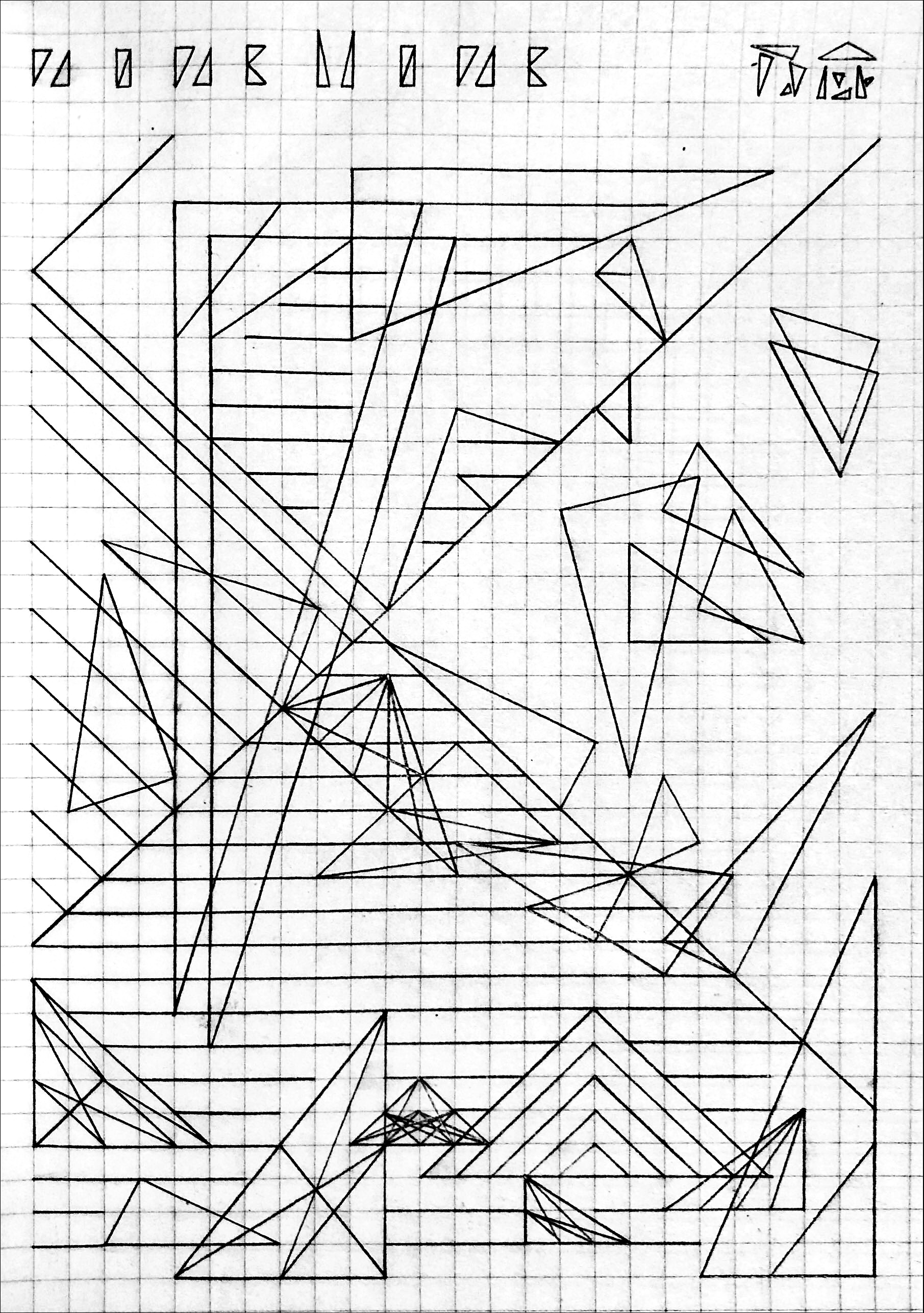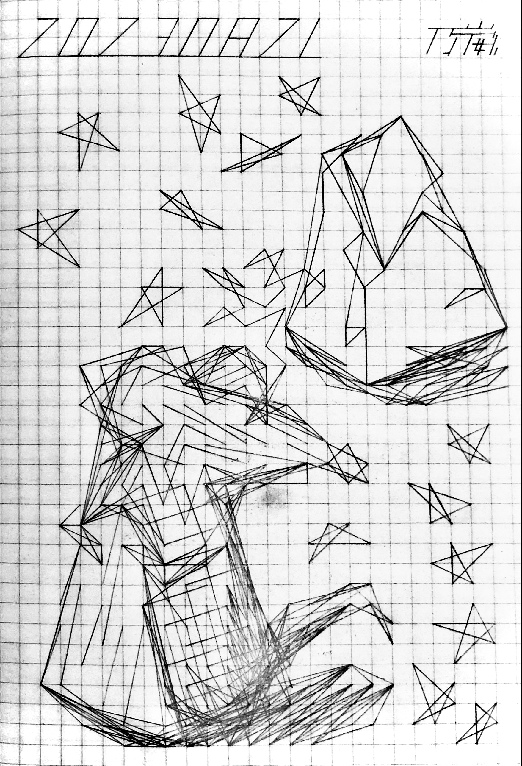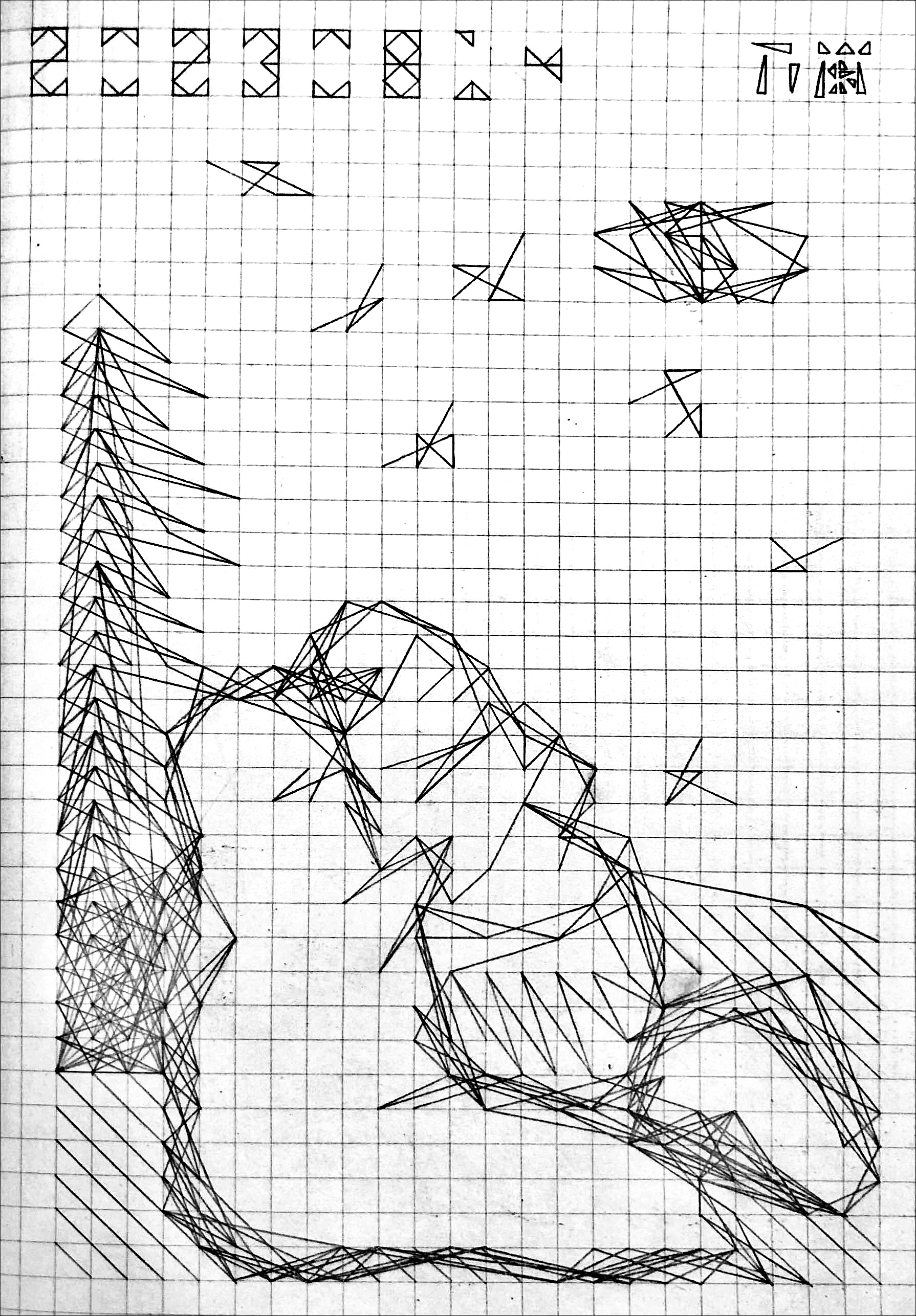 以純線條為限制條件,一週完成一幅素描,最終累積一百週的持續創作。作品以 2B 鉛筆於 A5 方格紙上繪製,探索直線取線在構圖、明暗與空間上的可能性。